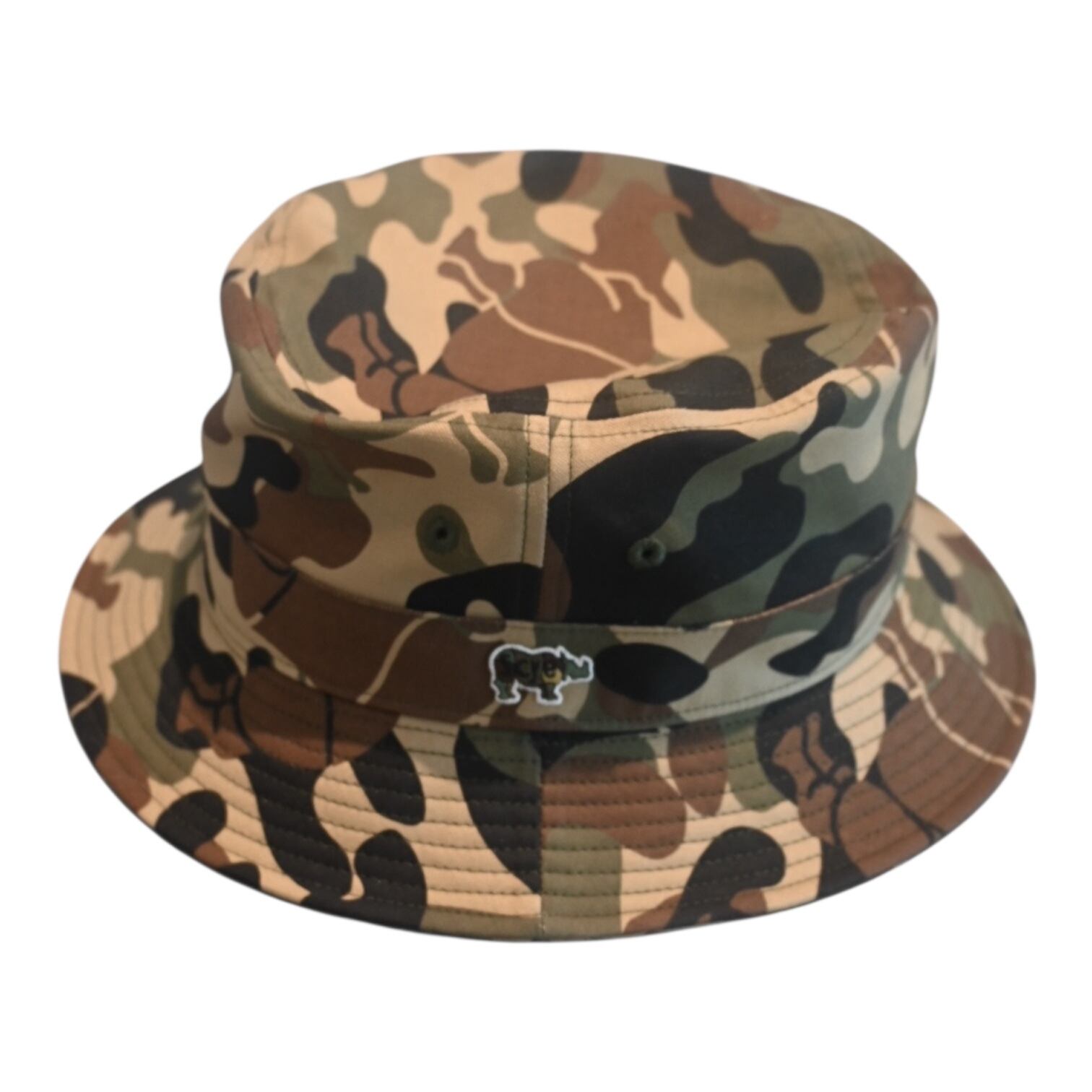 迷彩プリントは一見するとスタンダードなウッドランドカモパターンに見えますが、所々にサイのモチーフを忍ばせた、他には無いオリジナルパターン。