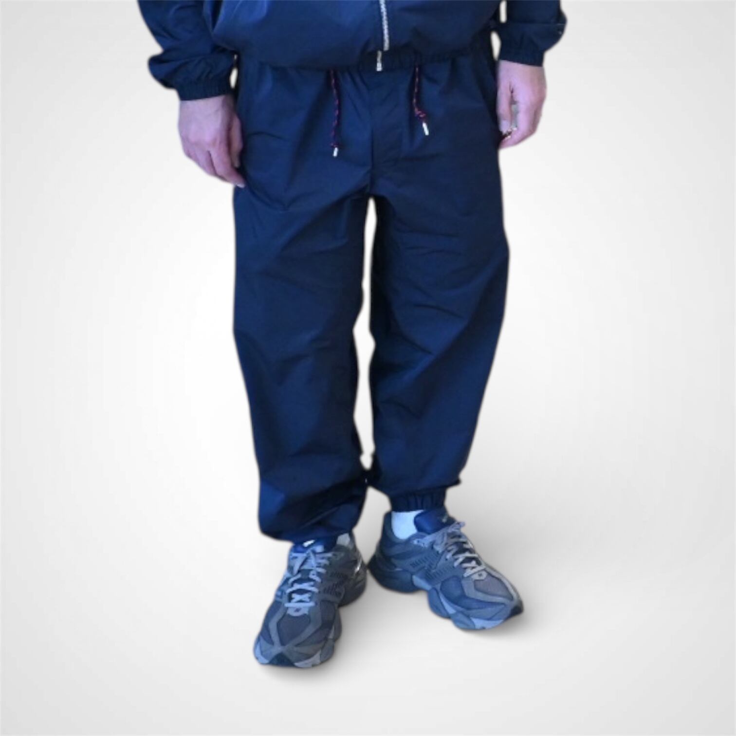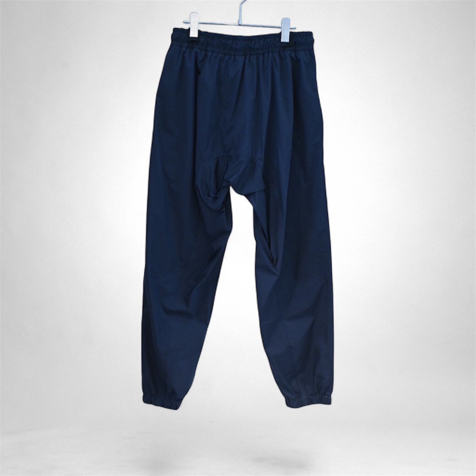 上品な光沢と滑らかな表面感を持つメモリー風ツイル素材を採用。後染めならではの鮮やかな発色と、先染め形状記憶素材に近い パリッとした張り感が特徴のファブリックを使用したトラックパンツです。 最大の特徴は、独自の立体カッティング。股下からヒップまで続く一体型のマチ構造により、身体の動きに沿った自然な 立体フォルムと、高い可動性を実現。大きく脚を開いてもストレスのない履き心地は、スポーツウェアのような機能性を備えつつ 洗練された見た目に仕上がっています。 デザインのアクセントには、ロゴ入りのテープディテールをワンポイントで配置。主張しすぎず、さりげなくブランドらしさを 演出します。素材の上質さとパターンの工夫が融合した、動きやすく美しいシルエットのトラックパンツ。 セットアップでの着用はもちろん、単品使いでもコーディネートに軽やかな個性を添える一本です。