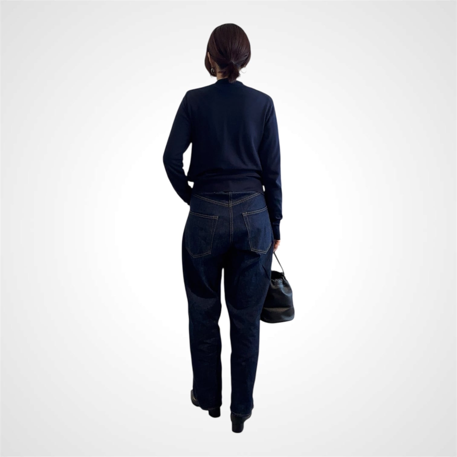 ウエストからヒップにかけてバギーらしいボリュームになっていながら、裾にかけて上品にテーパードがかけてあるため大人っぽいバギーのシルエットに。