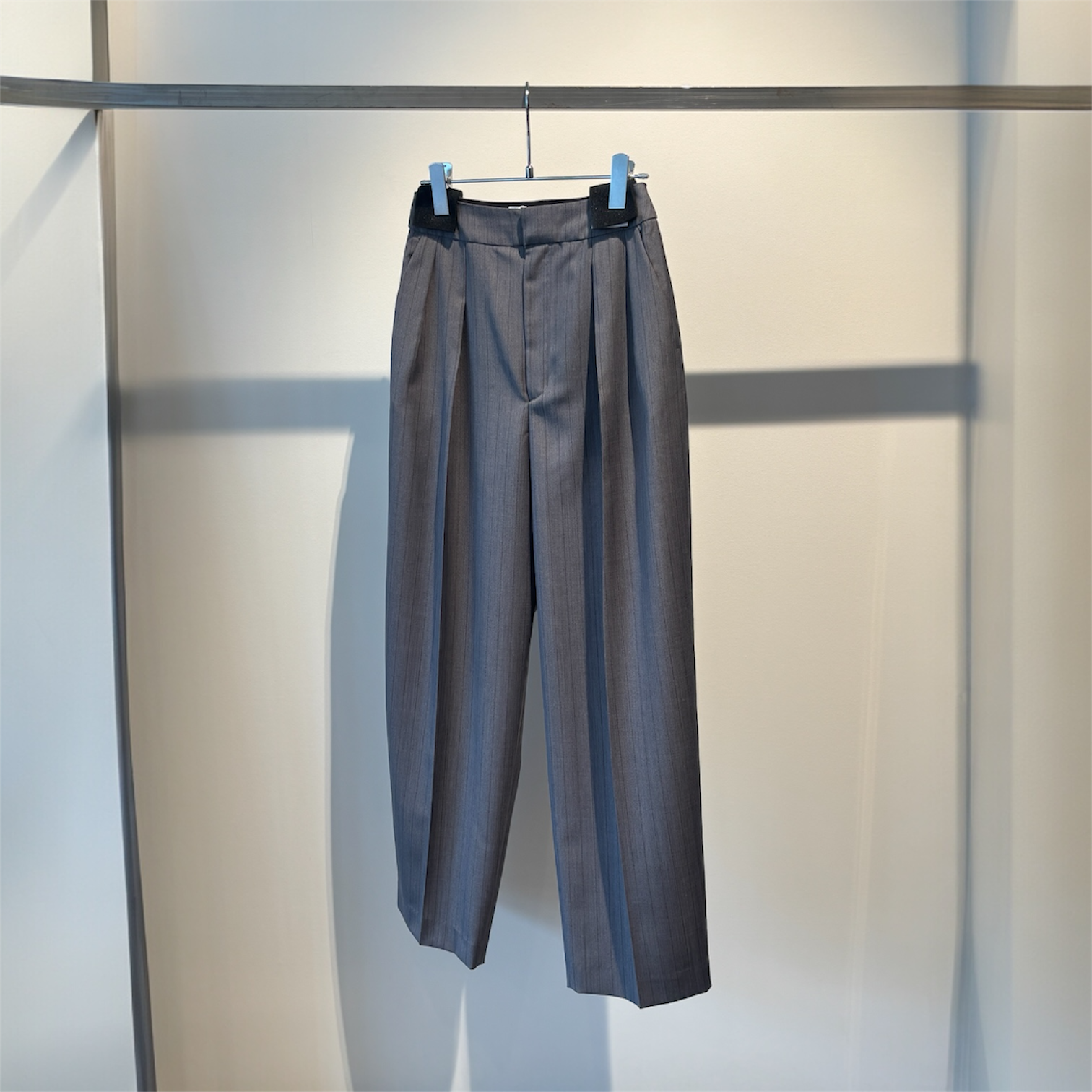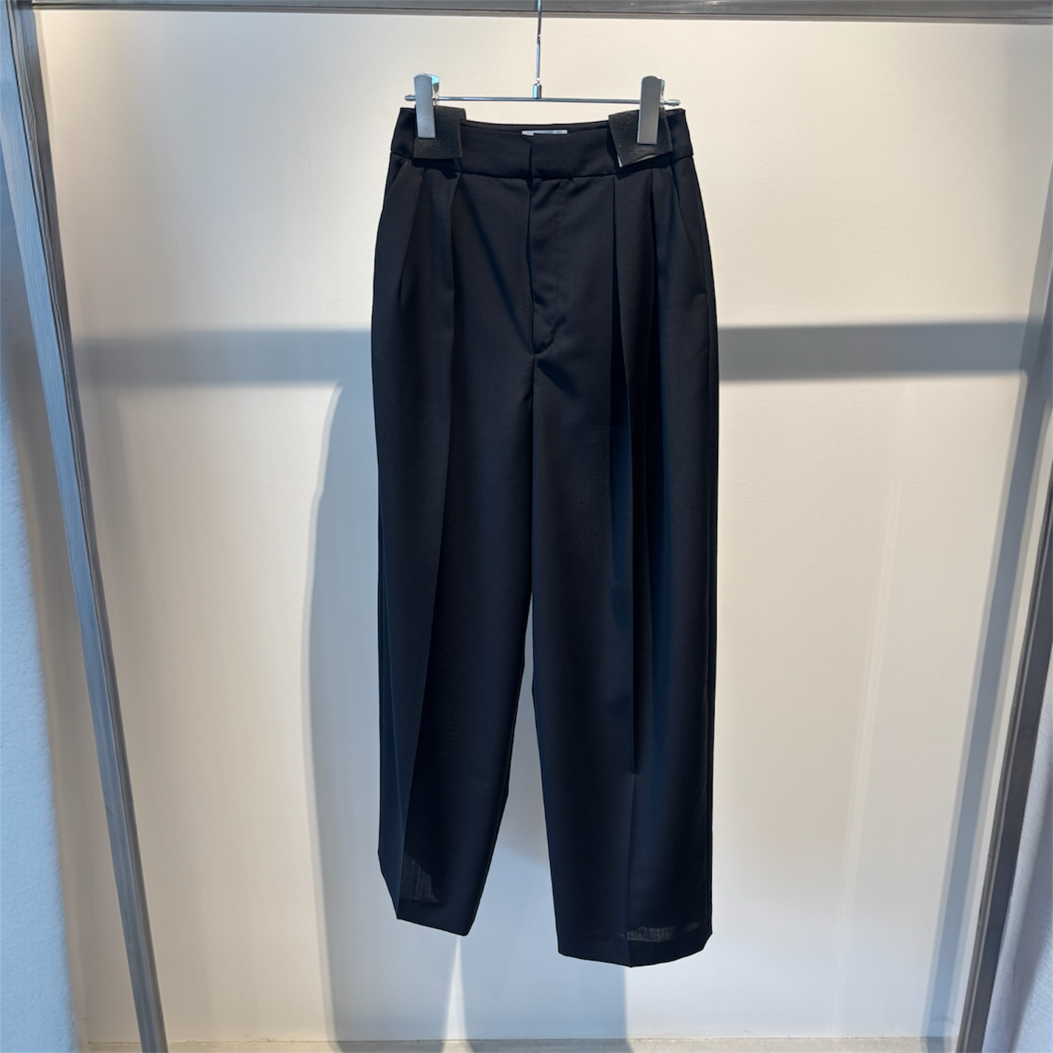 夏用のトロピカルウールを使用し、素材が持つ通気性と軽やかさを最大限に引き出したタックトラウザー。