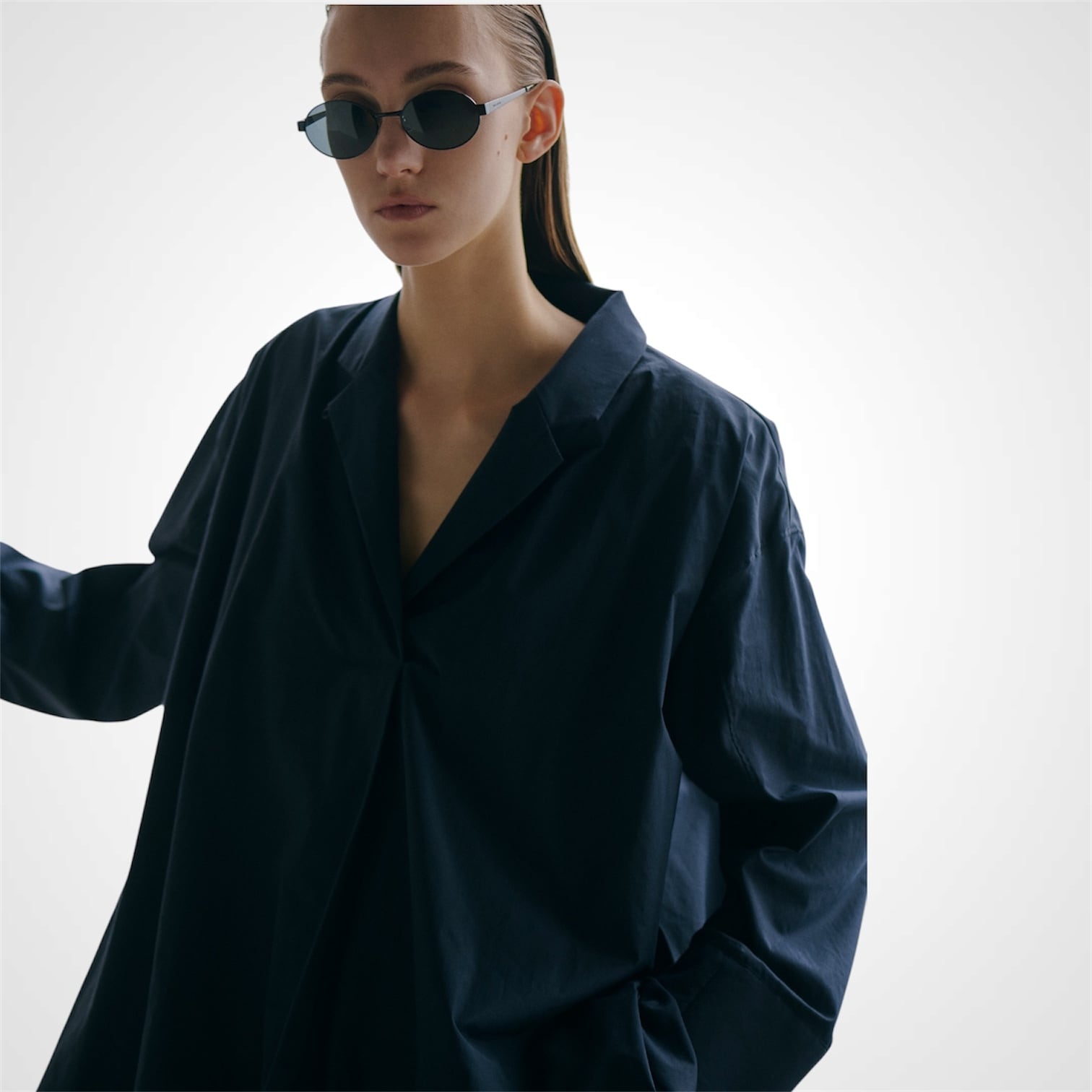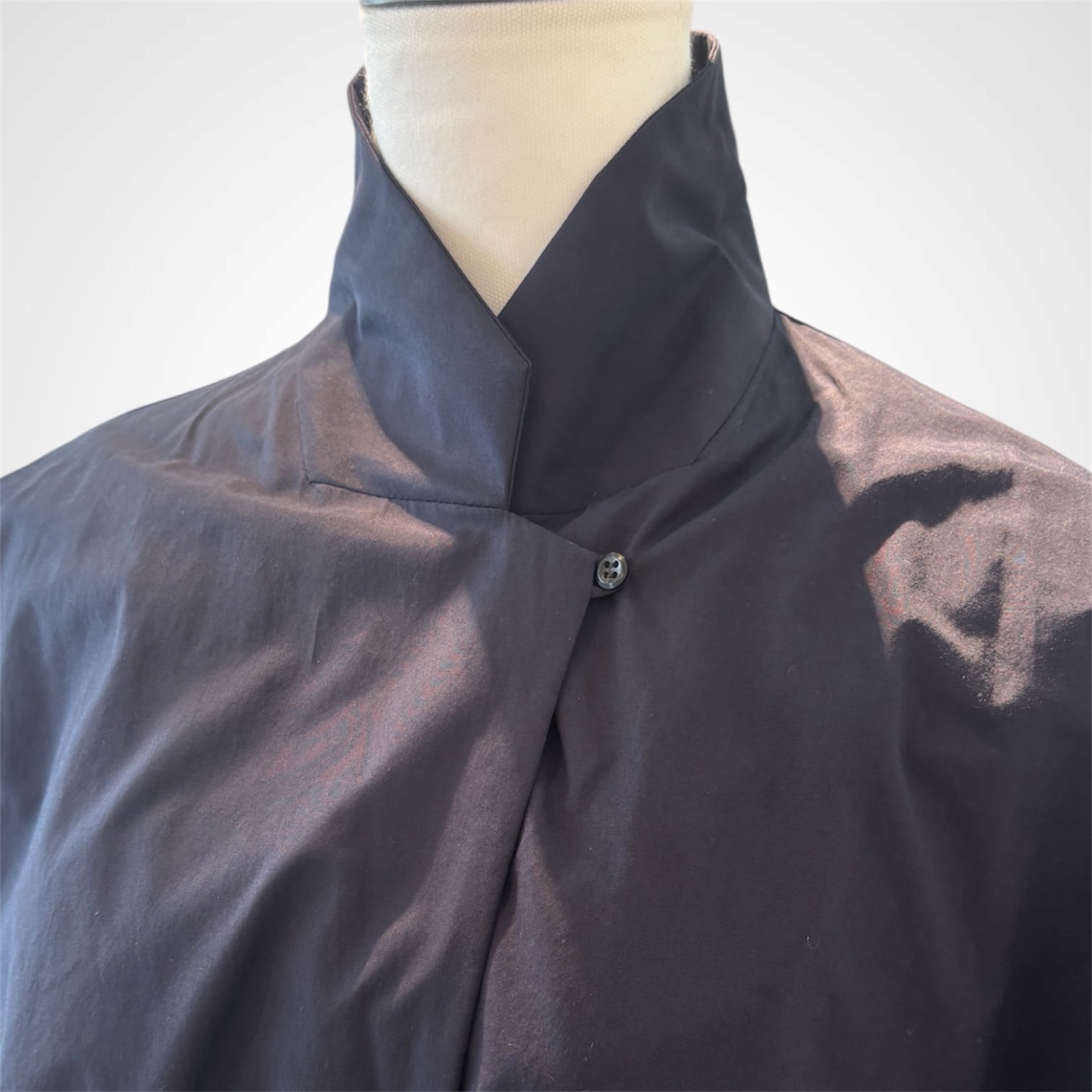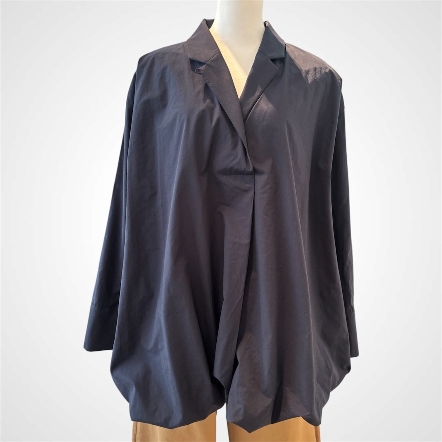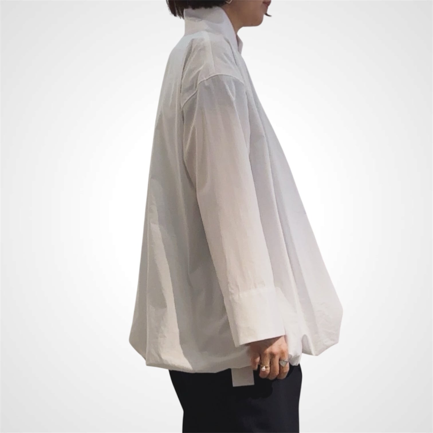 極細番手のコットン糸を使用した平織り生地を、贅沢に二枚仕立てにしたバルーンシルエットのコットンブラウス。